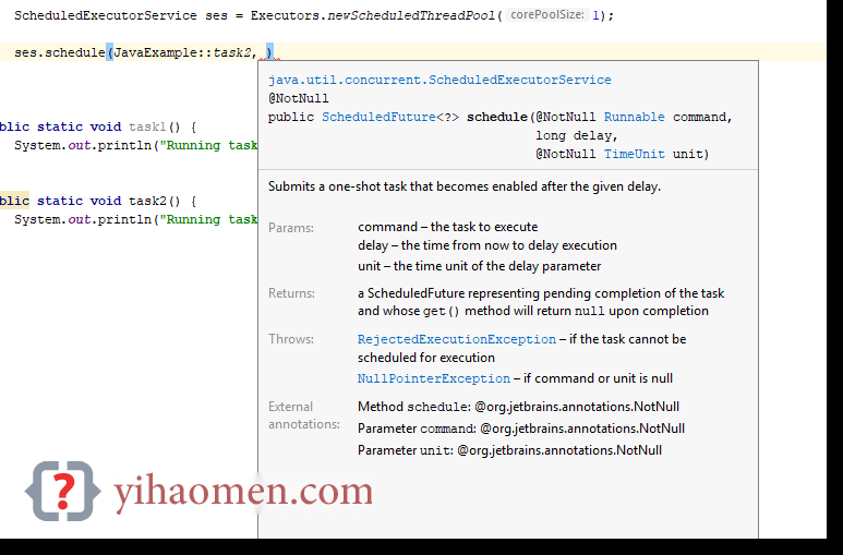 In IDEA, clicks on the method name, press CTRL + Q to show the method signature on a pop up.