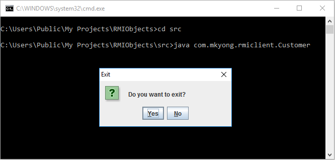 $ cd src $ java com.mkyong.rmiclient.Customer